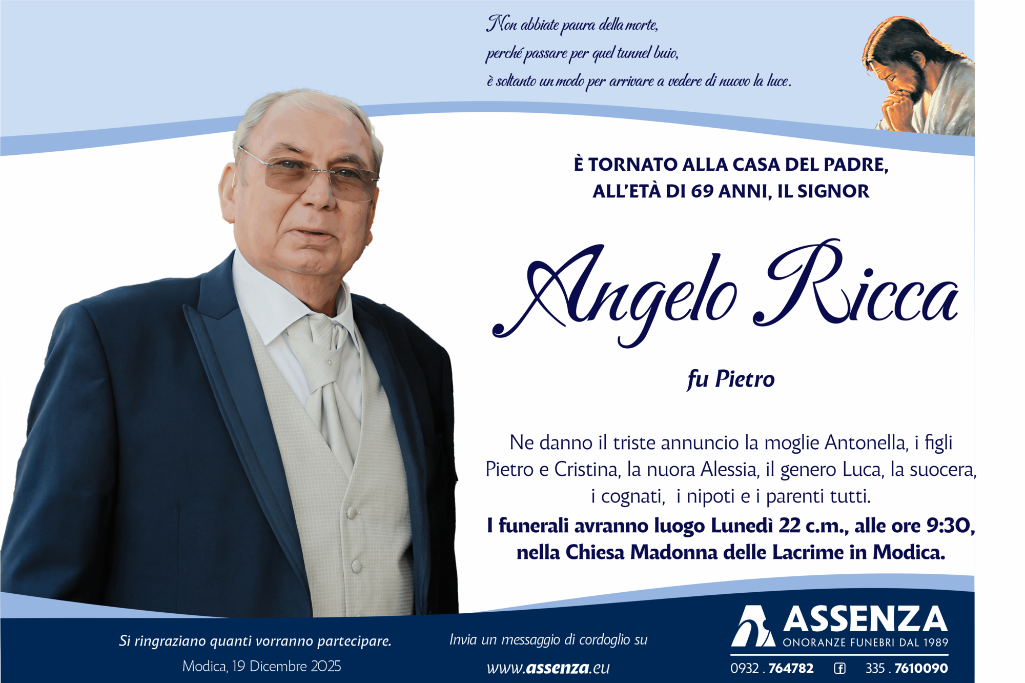 I funerali avranno luogo Lunedì 22 c.m., alle ore 9:30,