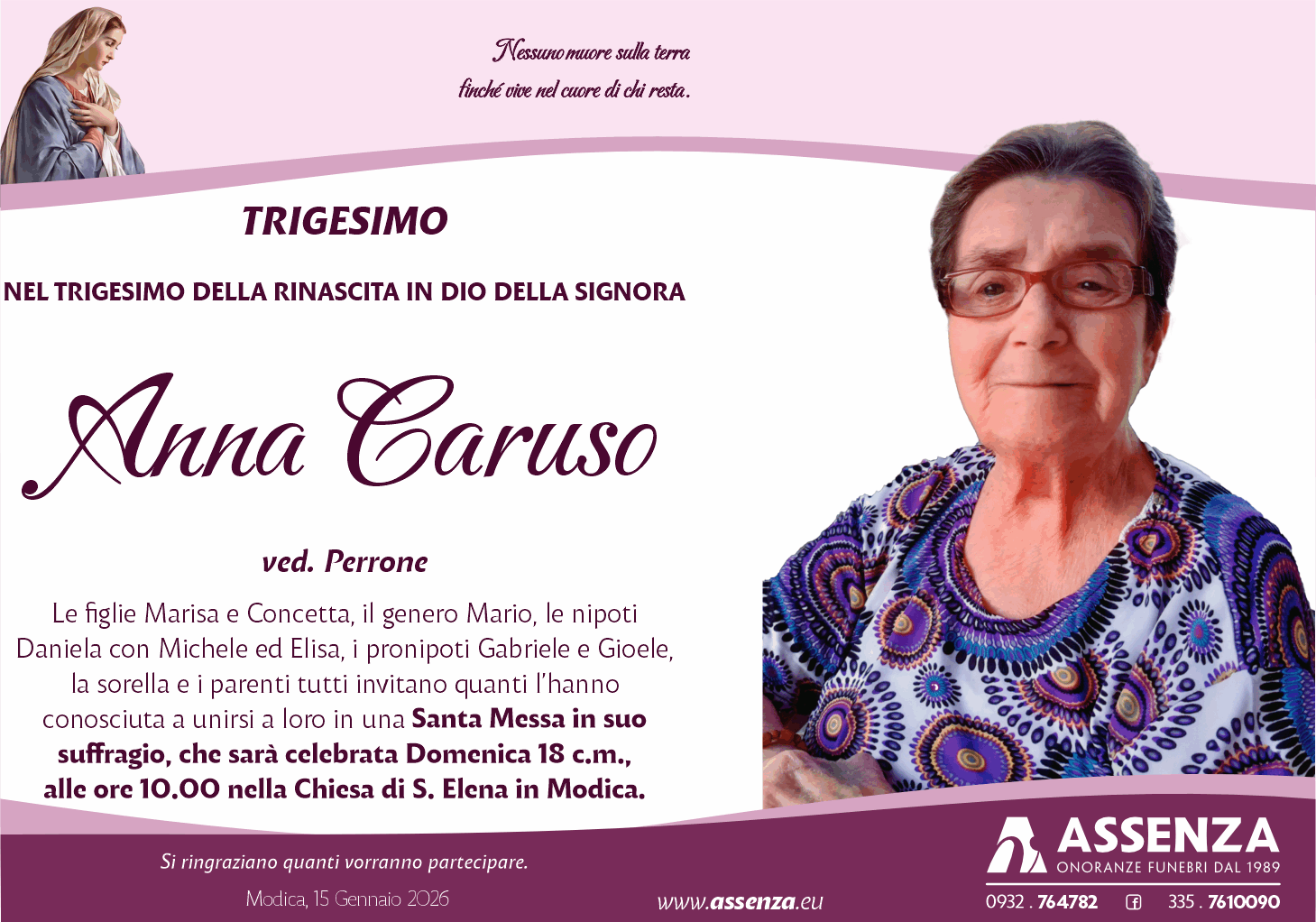 NEL TRIGESIMO DELLA RINASCITA IN DIO DELLA SIGNORA