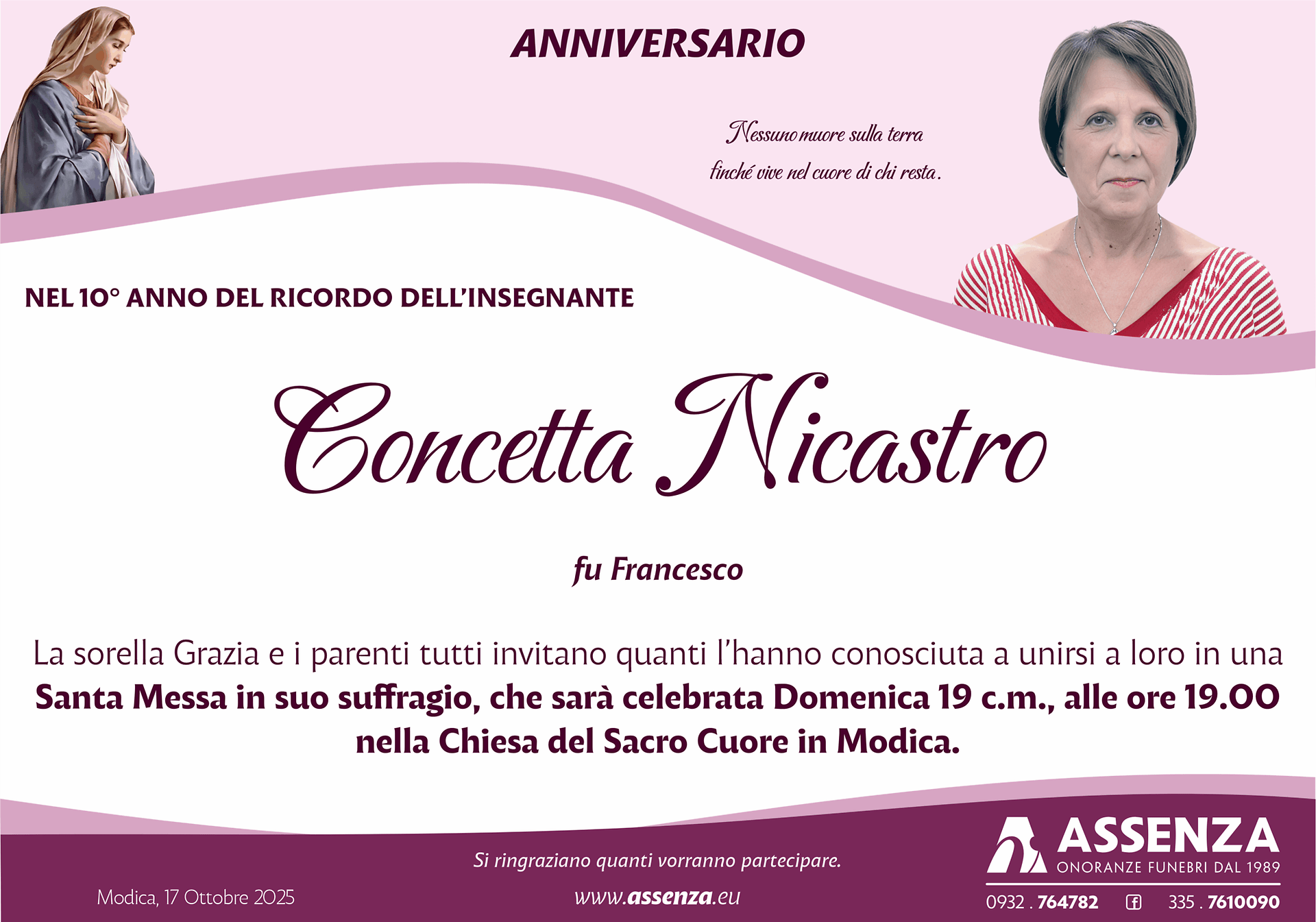 La sorella Grazia e i parenti tutti invitano quanti l’hanno conosciuta a unirsi a loro in una