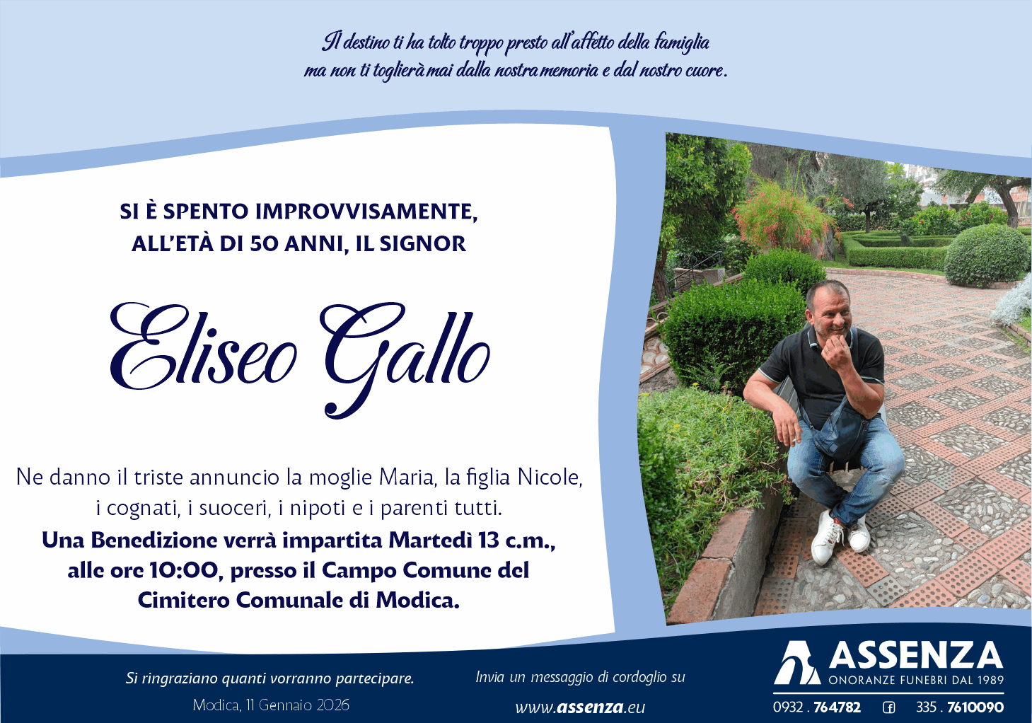 Il destino ti ha tolto troppo presto all’affetto della famiglia