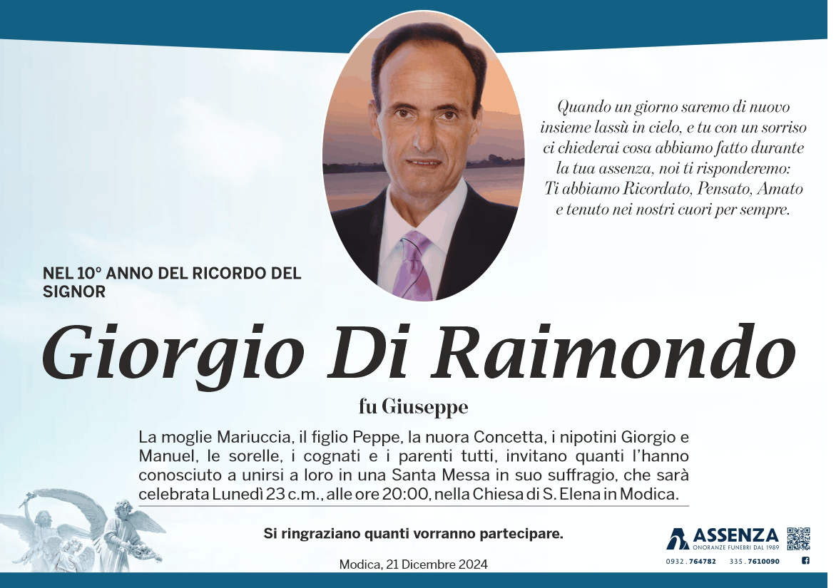 in una Santa Messa in suo suffragio, che sarà celebrata Lunedì 23 c.m.,