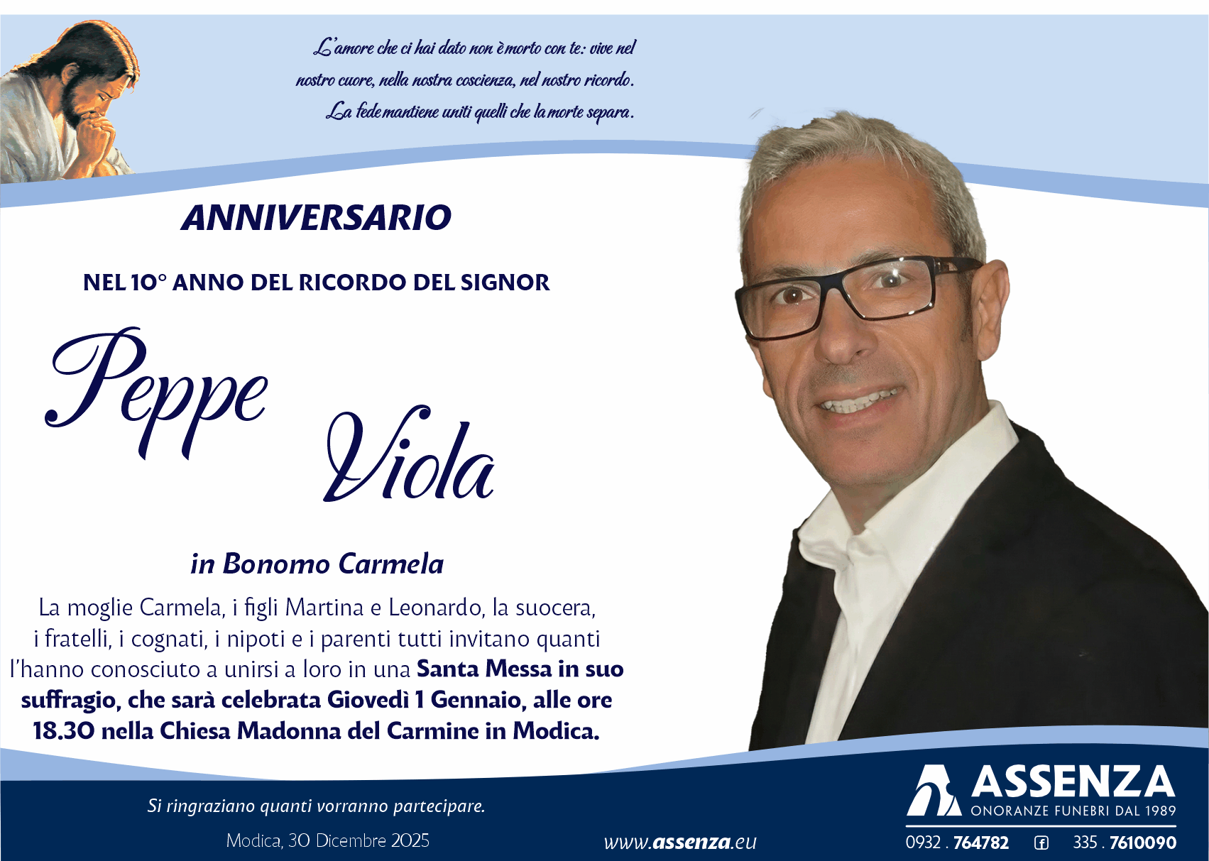 Santa Messa in suo suffragio, che sarà celebrata Giovedì 1 Gennaio,
