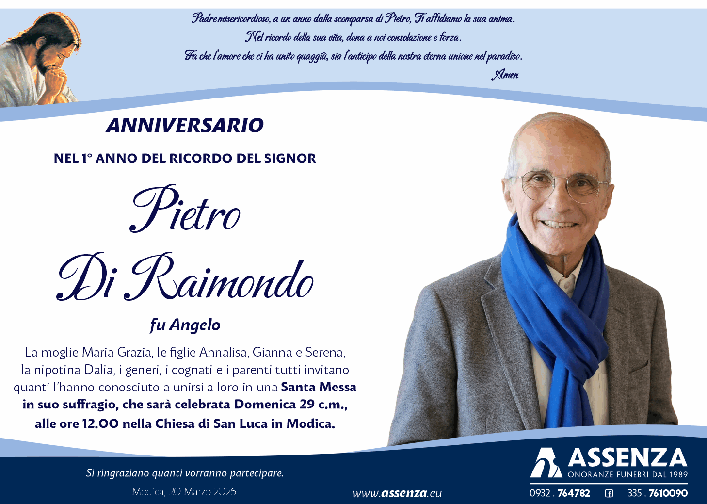 Padre misericordioso, a un anno dalla scomparsa di Pietro, Ti affidiamo la sua anima.
