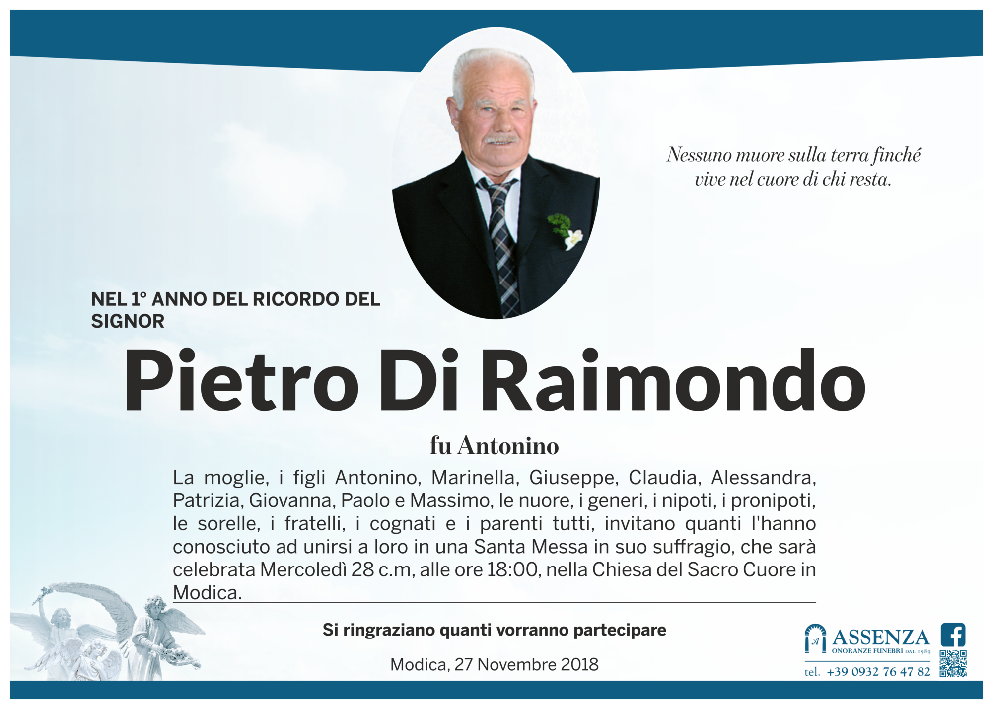 La moglie, i figli Antonino, Marinella, Giuseppe, Claudia, Alessandra, Patrizia, Giovanna, Paolo e Massimo, le nuore, i generi, i nipoti, i pronipoti, le sorelle, i fratelli, i cognati e i parenti tutti, invitano quanti l'hanno conosciuto ad unirsi a loro in una Santa Messa in suo suffragio, che sarà celebrata Mercoledì 28 c.m, alle ore 18:00, nella Chiesa del Sacro Cuore in Modica.