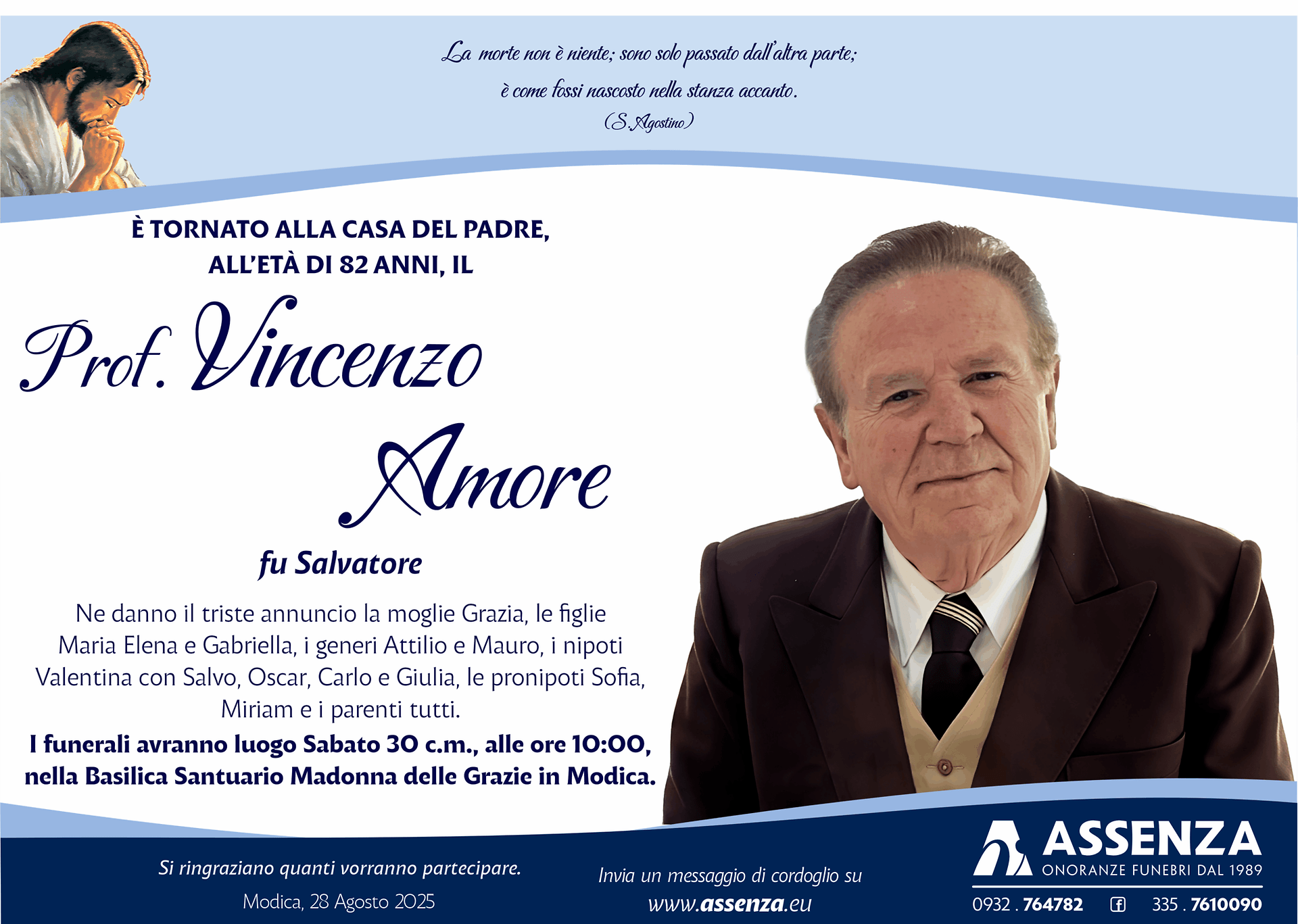 I funerali avranno luogo Sabato 30 c.m., alle ore 10:00,