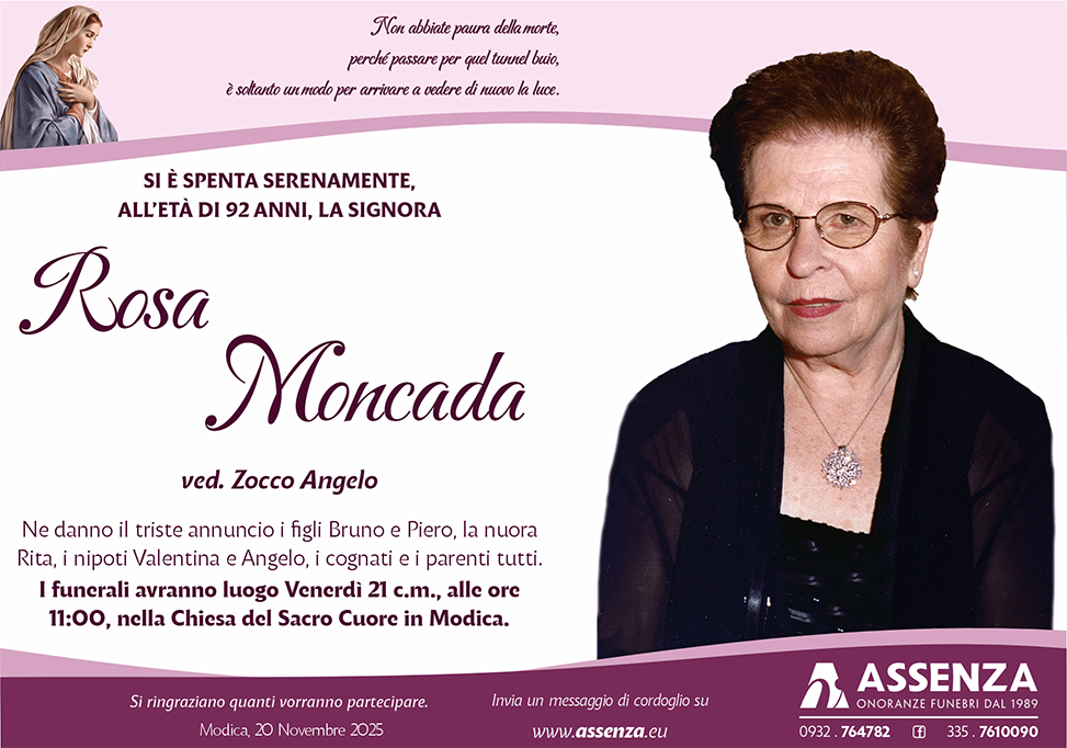 I funerali avranno luogo Venerdì 21 c.m., alle ore 11:00,