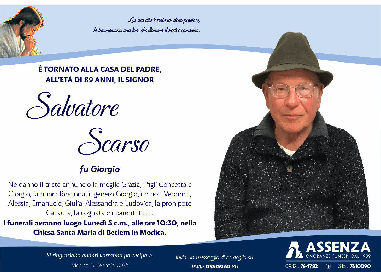 I funerali avranno luogo Lunedì 5 c.m., alle ore 10:30,