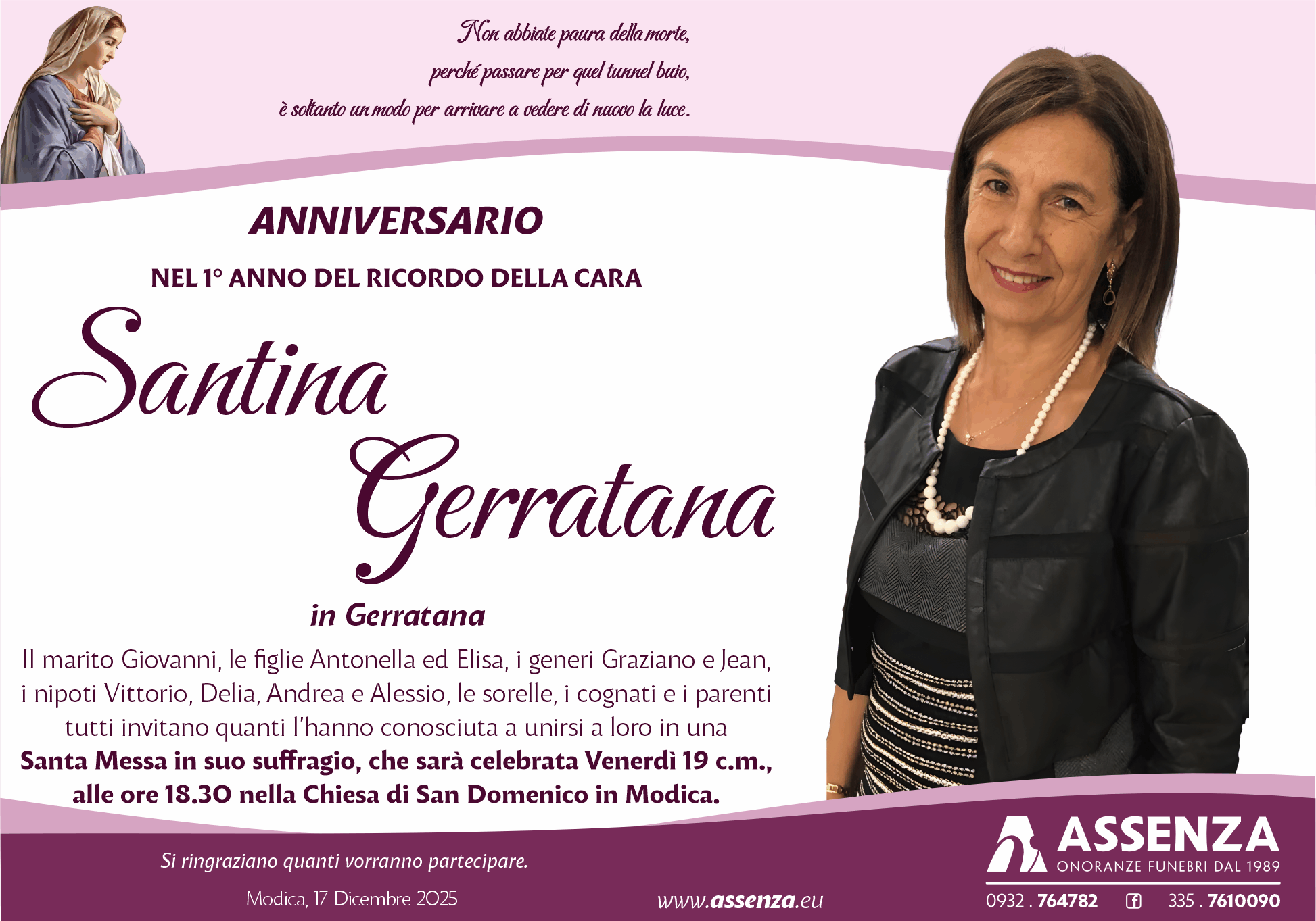 Santa Messa in suo suffragio, che sarà celebrata Venerdì 19 c.m.,