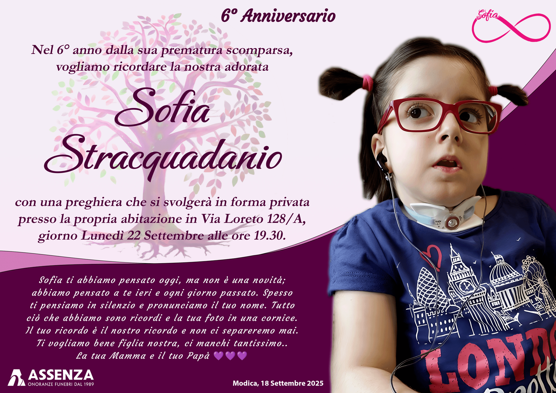 Ti vogliamo bene figlia nostra, ci manchi tantissimo..