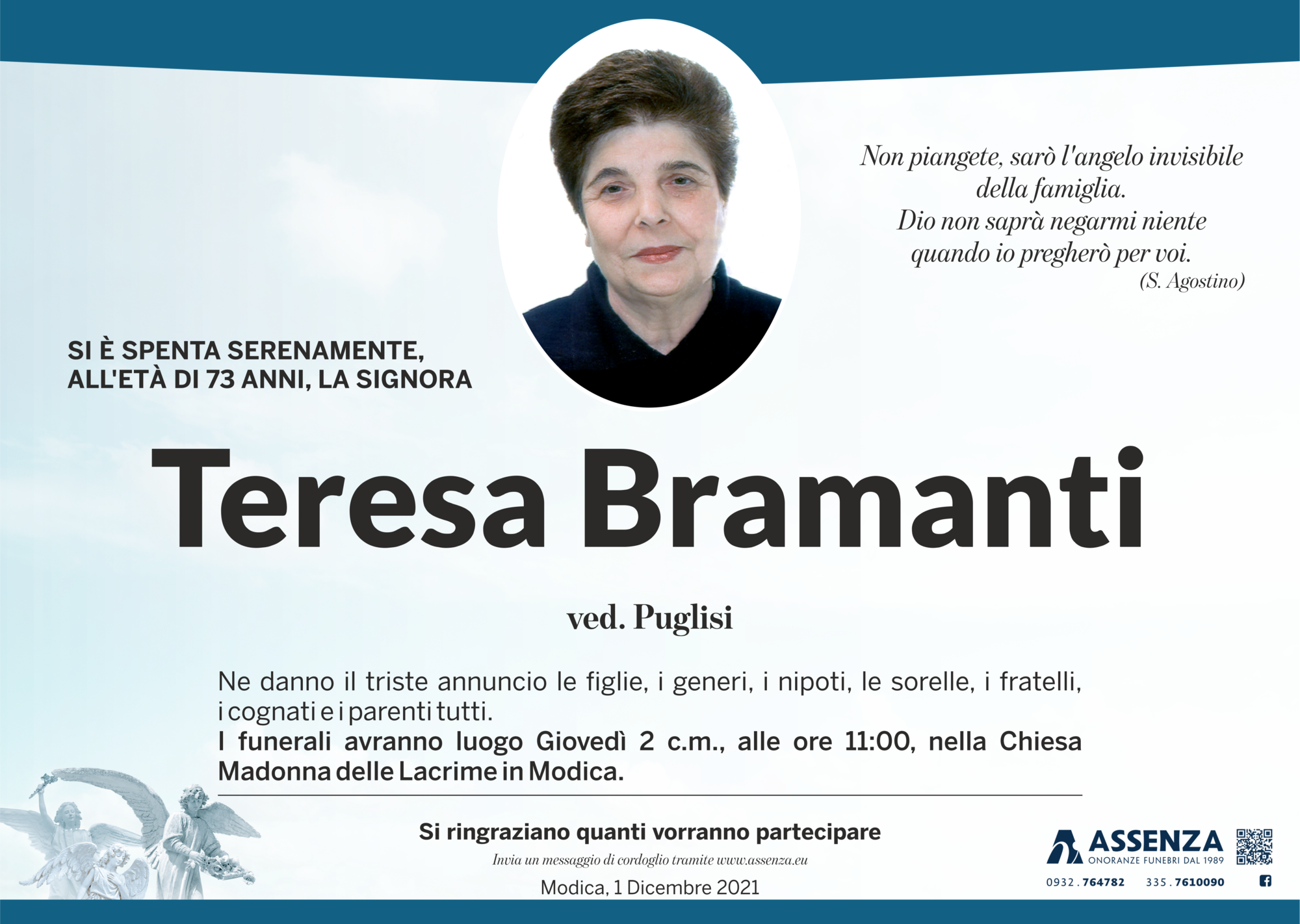 I funerali avranno luogo Giovedì 2 c.m., alle ore 11:00, nella Chiesa Madonna delle Lacrime in Modica.